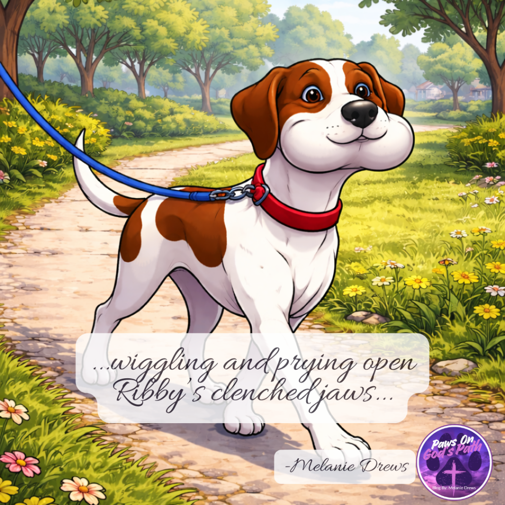 Ribby was definitely enjoying his walk. His puppy’s mouth was getting full, and his owner was getting full of frustration!