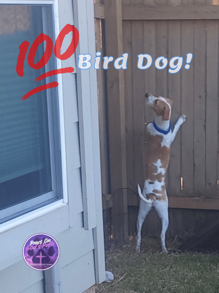When Ribby sees a bird, his instincts as a hunting dog kick in, even though he has not hunted a day in his life.